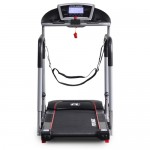 Модель також має вбудовані динаміки та MP3-роз’єм, що додає комфорту під час занять. Бігова зона — 420×1260 мм із системою амортизації VLC для зменшення навантаження на колінні та гомілкові суглоби. Передбачено 3 рівні механічного нахилу полотна для зміни інтенсивності занять.