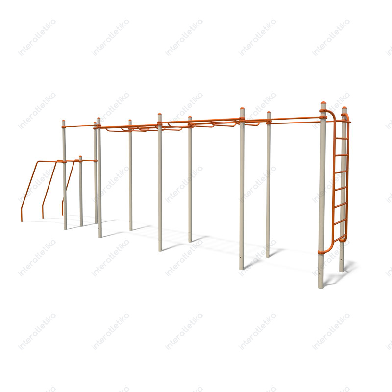 Це багатофункціональний спортивний комплекс для воркауту, виготовлений із міцного металу з антикорозійним покриттям. Містить турніки, рукоходи, шведську стінку, бруси — усе необхідне для тренування сили, витривалості та координації на свіжому повітрі. Ідеально підходить для занять як дорослих, так і підлітків.