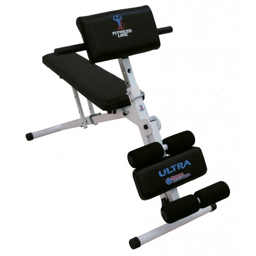 Багатофункціональна скамья призначена для формування та зміцнення: преса (верхній, нижній), поздовжніх м'язів спини, біцепсів.