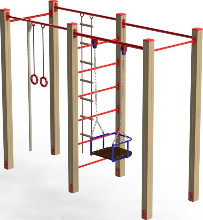 Універсальний гімнастичний комплекс призначений для установки на подвір'ях приватних будинків або в котеджних містечках. Комплекс дозволяє виконувати вправи на силу, витривалість і спритність.
