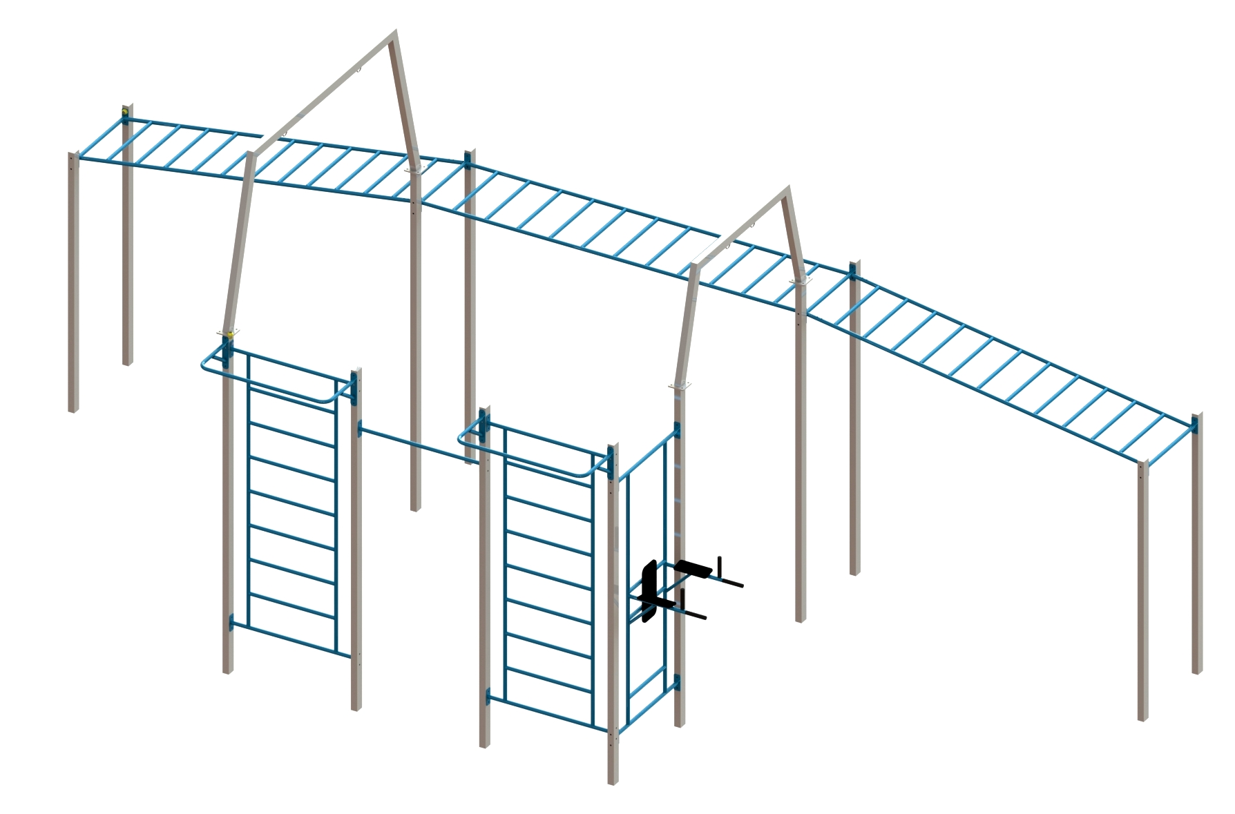 В комплексу входять: турнік, рукоход, дві шведські стінки, упор для преса з упором на руки, бруси, дві стійки з підвісом для двох боксерських мішків і двох канатів.