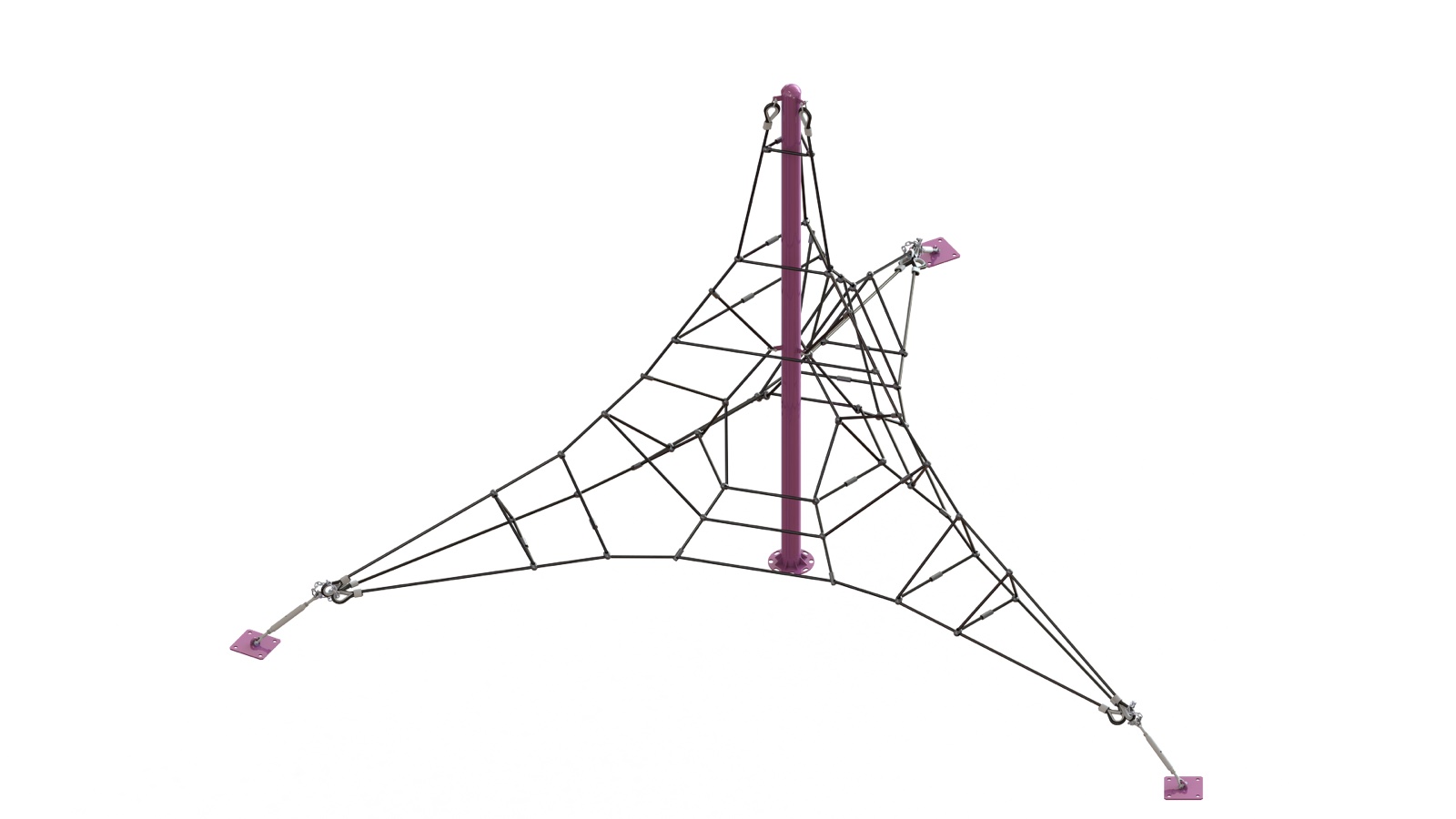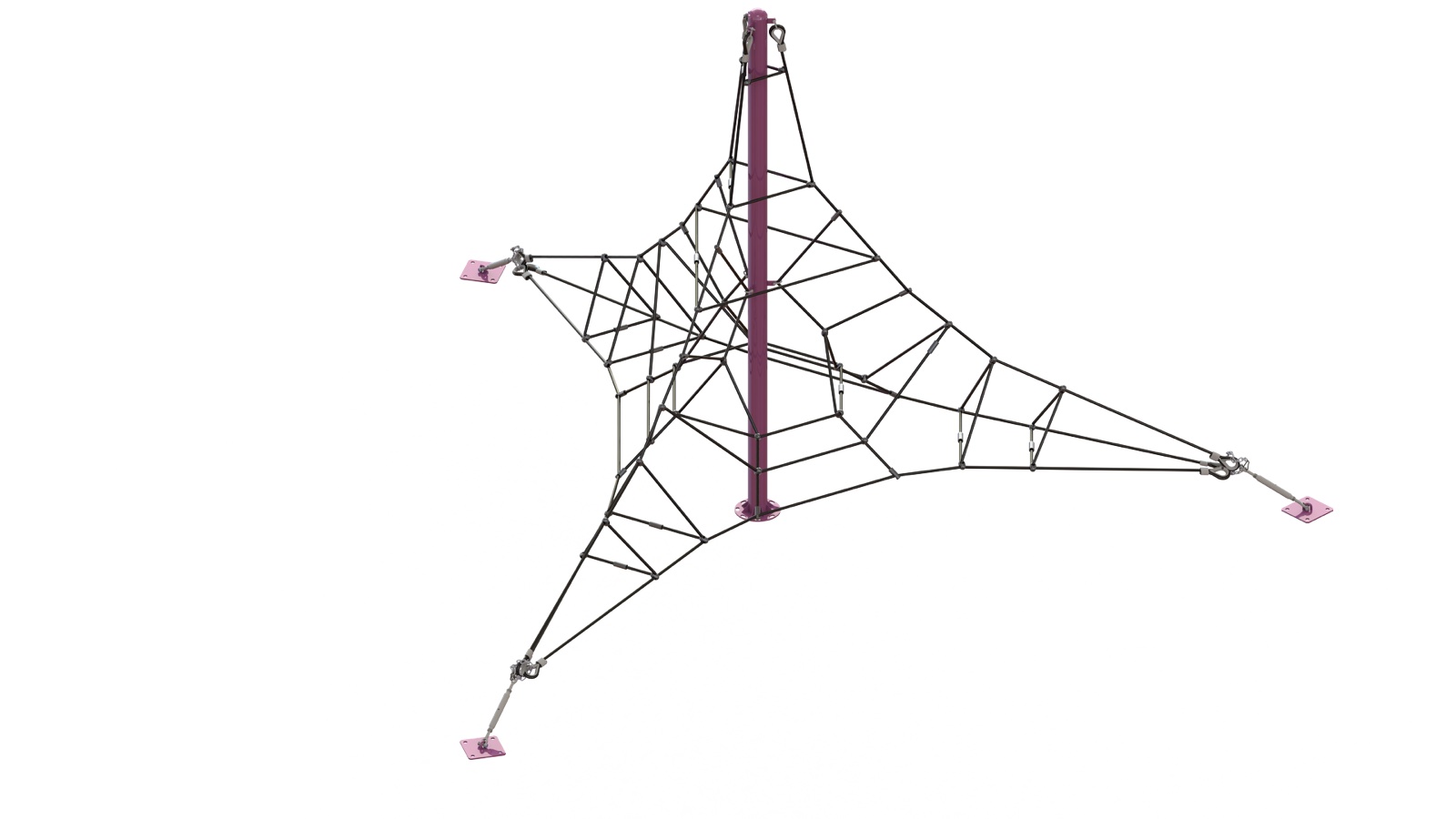 Для дополнительной фиксации конструкции канаты закрепляются в четырех точках с помощью металлических кронштейнов, а пластиковые колпачки гарантируют надежный и безопасный крепеж.
