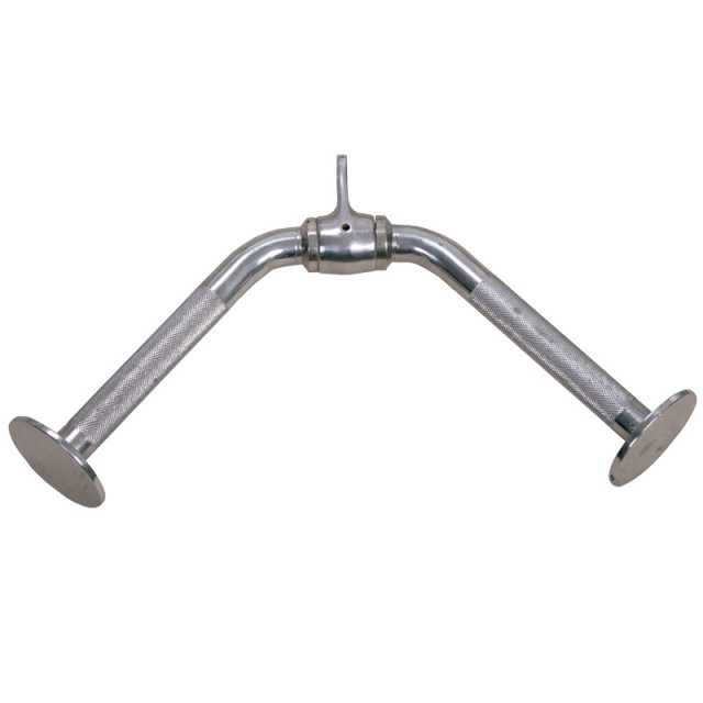 Ручка для тяги знизу InterAtletika D4-08 (трицепс), що обертається застосовується не тільки під час силових занять, але також і для фізкультури, або аеробіки. Конструкція має вигнуту форму. Для надійного і міцного хвата на ручках є насічки. Це забезпечить зручну і комфортну тренування. В якості основи для конструкції використана високоякісна сталь. Є покриття проти іржі.