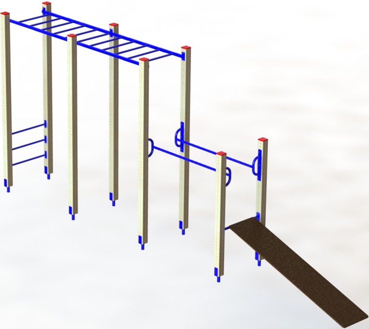 Універсальний гімнастичний комплекс призначений для установки на подвір'ях приватних будинків або в котеджних містечках. Комплекс дозволяє виконувати вправи на силу, витривалість і спритність.