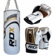Дана боксерська груша ідеально підходить для дітей. Боксерська груша виготовлена ??з високоякісної шкіри Майя. Його висота 65 сантиметрів. Вага мішка 10-12 кг. Дизайн мішка передбачає наявність блискавки у верхньому відділі, завдяки якій можна міняти наповнення мішка, роблячи його більш щільним. Поворотний гак дозволяє надійно зафіксувати мішок на рамці для боксу або настінному кронштейні. Підкладка з EVA піни прекрасно поглащает удари. Боксерський набір RDX можна використовувати і в домашніх умовах. Він ідеально підходить для початківців боксерів, спеціально призначений для відпрацювання техніки руками і ногами