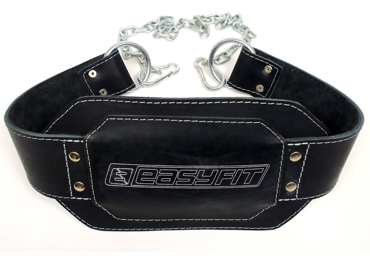 Шкіряний пояс з ланцюгом EasyFit рекомендується для використання в комерційних спортивних залах з обтяженнями вагою до 250 кг. Високий комфорт при виконанні вправ забезпечено в результаті вибору раціонального крою поясу: навіть при роботі з великою вагою ремінь не тисне на тазостегнову кістку і поперек, а також не сповзає вниз.
