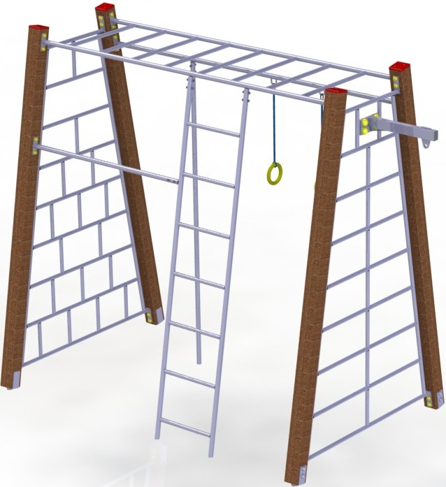 Універсальний гімнастичний комплекс призначений для установки на подвір'ях приватних будинків або в котеджних містечках. Комплекс дозволяє виконувати вправи на силу, витривалість і спритність.