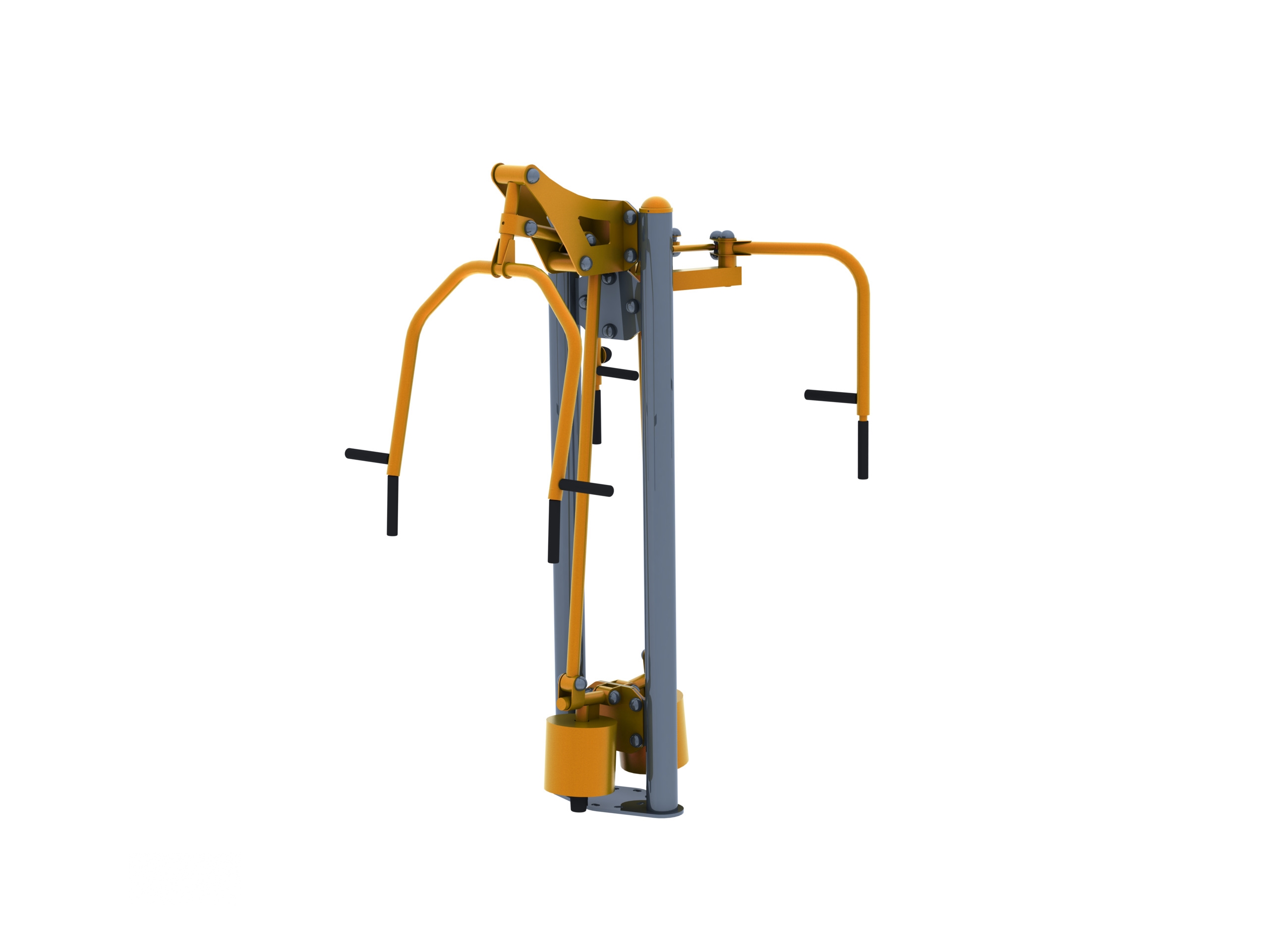Це інклюзивний тренажер, який поєднує функції жиму від грудей та батерфляю, забезпечуючи ефективне тренування для м’язів верхньої частини тіла. Цей тренажер ідеально підходить для людей різного віку та фізичних можливостей. Підходить для людей,які користуються кріслами колісними, і забезпечує комфортний доступ під час тренувань.