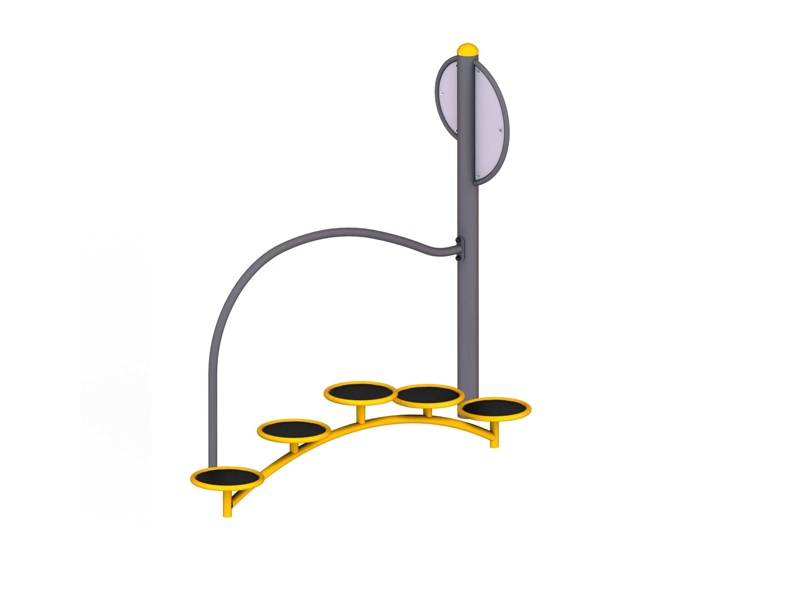 Це інклюзивний вуличний тренажер, розроблений для покращення балансу, координації та загальної стабільності тіла. Тренажер підходить для людей різного віку та фізичних можливостей, дозволяючи розвивати навички рівноваги через прості, але ефективні вправи.