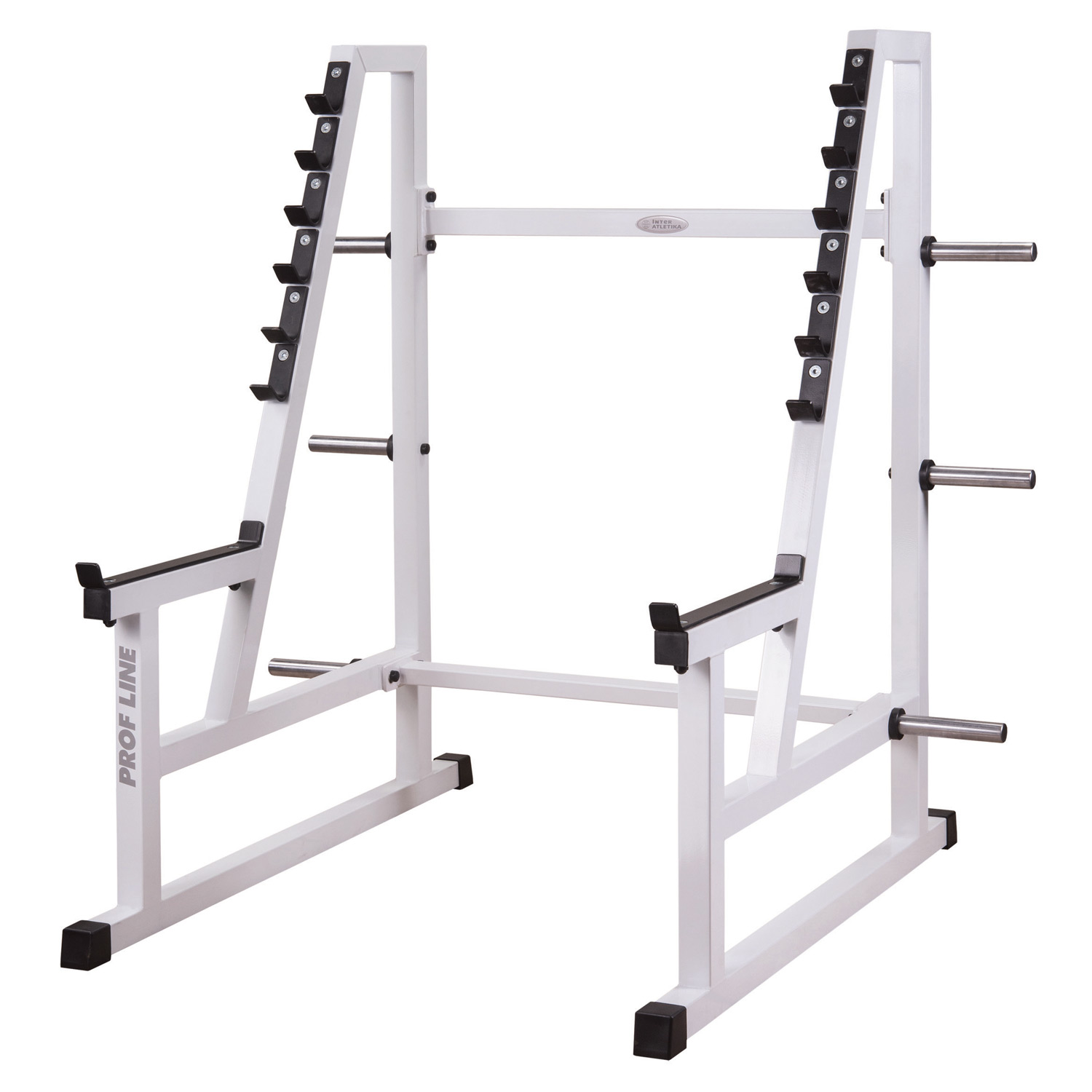 Стійка для присідань призначена для вправ зі штангою. Для усунення ковзання тренажер оснащений амортизуючими підп'ятниками, що не вимагають кріплення до підлоги. Посилена конструкція з нержавіючої сталі. Всі деталі високоякісні та зносостійкі. Матеріал і конструктивні особливості тренажера дозволяють інтенсивно експлуатувати його більше 12 годин на добу.