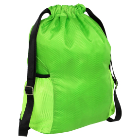 Рюкзак-мішок виконаний у циліндричній формі, що забезпечує оптимальне розподілення простору всередині виробу. Ширина рюкзака становить 36 см, глибина – 14 см, а висота – 41 см, що робить його досить містким для повсякденного використання. Зшитий з нейлону — матеріалу, відомого своєю легкістю, міцністю та стійкістю до вологи. Нейлонова тканина легко чиститься, що особливо важливо для людей, які займаються спортом або перебувають у постійному русі.