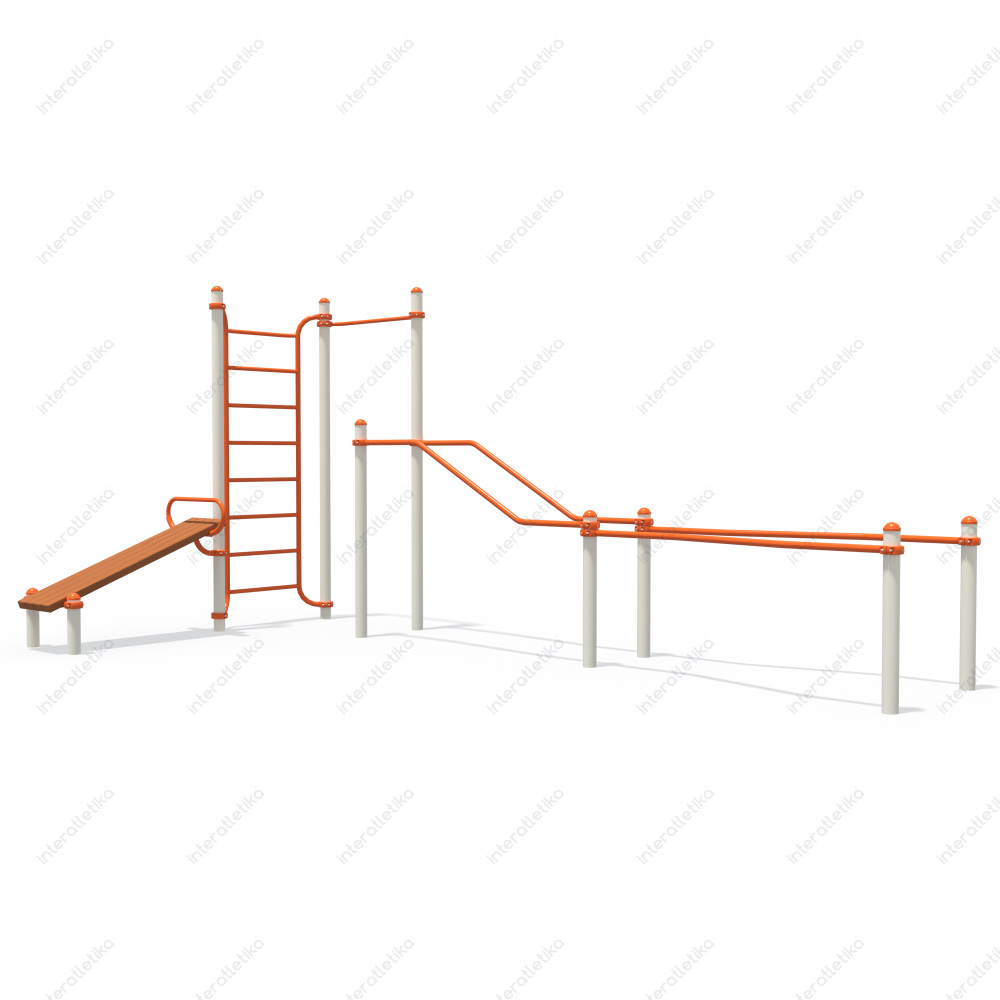 Це комплекс, який поєднує кілька тренажерів для комплексного розвитку м’язів верхньої і нижньої частини тіла. Вона дозволяє виконувати вправи на прес, спину, груди та руки, використовуючи вагу власного тіла. Конструкція стійка до атмосферних впливів, тому ідеально підходить для встановлення у дворах, парках чи на спортивних майданчиках.